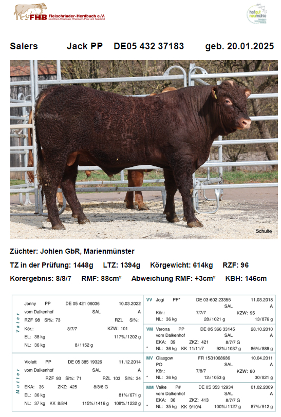Verkaufe ganzjährig Nachzucht unseres 9/9/8 gekörten Deckbullen "Nuk", Färsen und körfähige Jungbullen.![]() | Bernd Nolte Neue Heerstraße 3 37124 Rosdorf Telefon: 05502 3824 Mobil: 0176 544 133 64 |